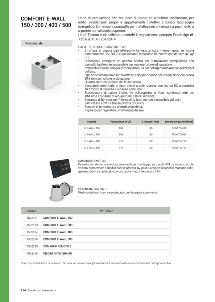 velocità, temperatura e modi di funzionamento, by-pass e antigelo; lunghezza massima colle-