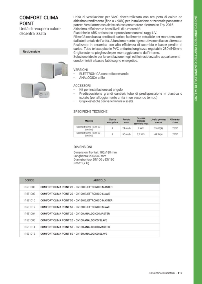 COMFORT CLIMA POINT 50 - DN160 ELETTRONICO MASTER