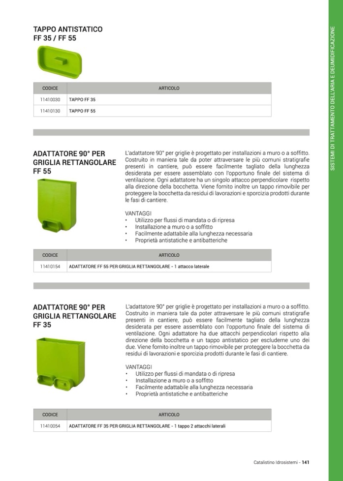 ventilazione. Ogni adattatore ha due attacchi perpendicolari rispetto alla