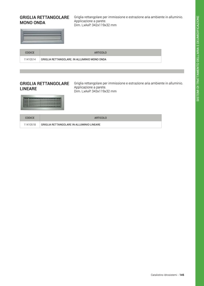GRIGLIA RETTANGOLARE. IN ALLUMINIO MONO ONDA