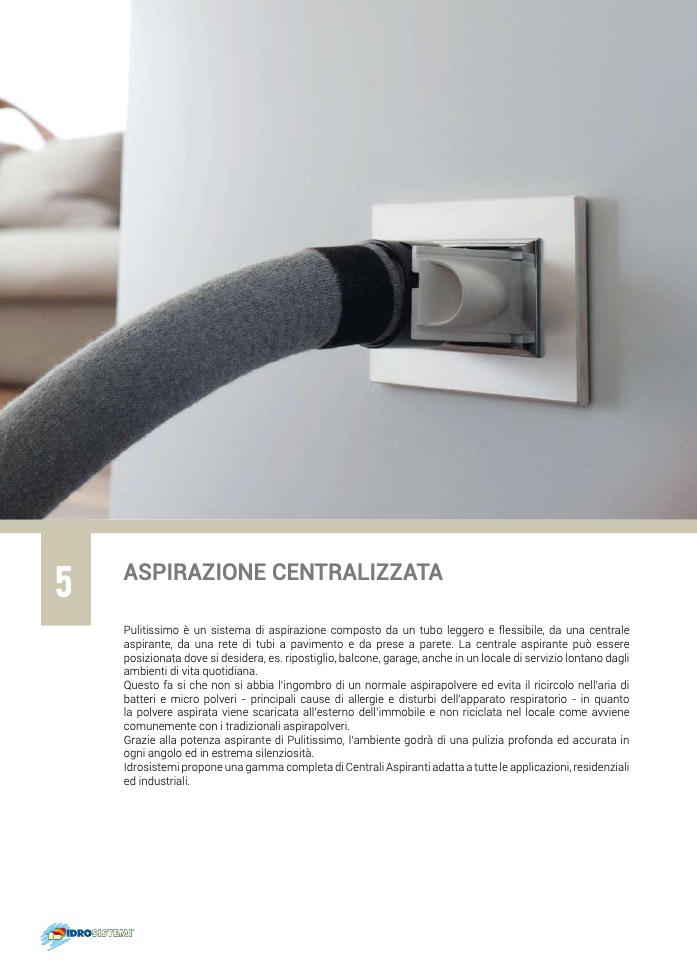 aspirante, da una rete di tubi a pavimento e da prese a parete. La centrale aspirante può essere