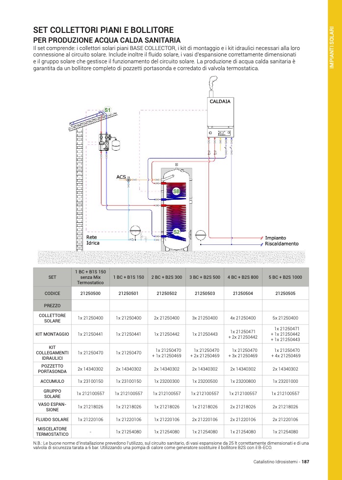 valvola di sicurezza tarata a 6 bar. Utilizzando una pompa di calore come generatore sostituire il bollitore B2S con il B-ECO.