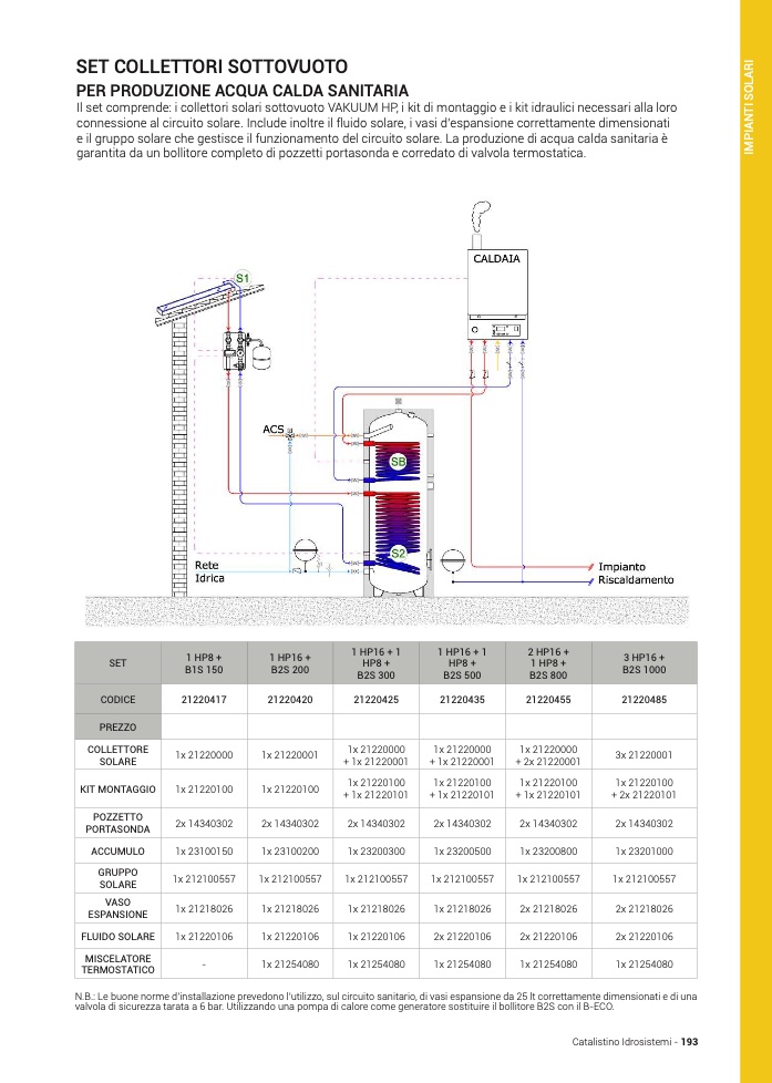 valvola di sicurezza tarata a 6 bar. Utilizzando una pompa di calore come generatore sostituire il bollitore B2S con il B-ECO.