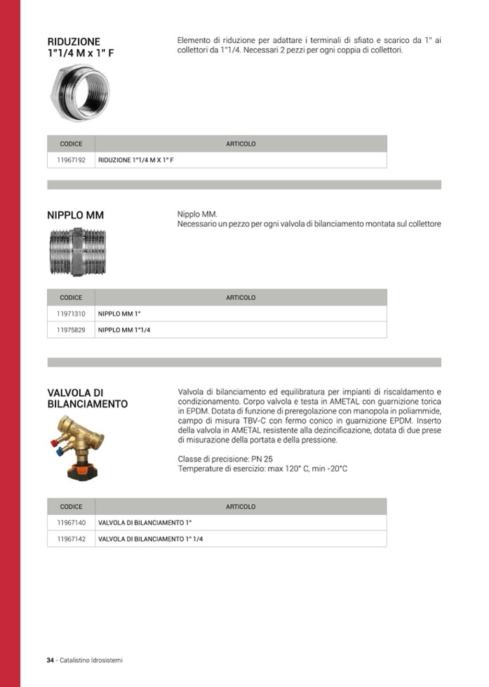 Necessario un pezzo per ogni valvola di bilanciamento montata sul collettore