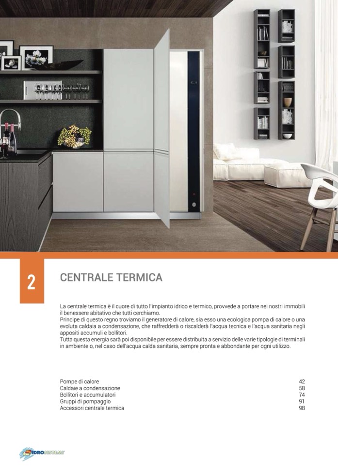 evoluta caldaia a condensazione, che raffredderà o riscalderà l’acqua tecnica e l’acqua sanitaria negli