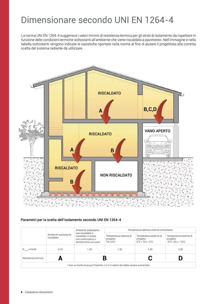 La norma UNI EN 1264-4 suggerisce i valori minimi di resistenza termica per gli strati di isolamento da rispettare in