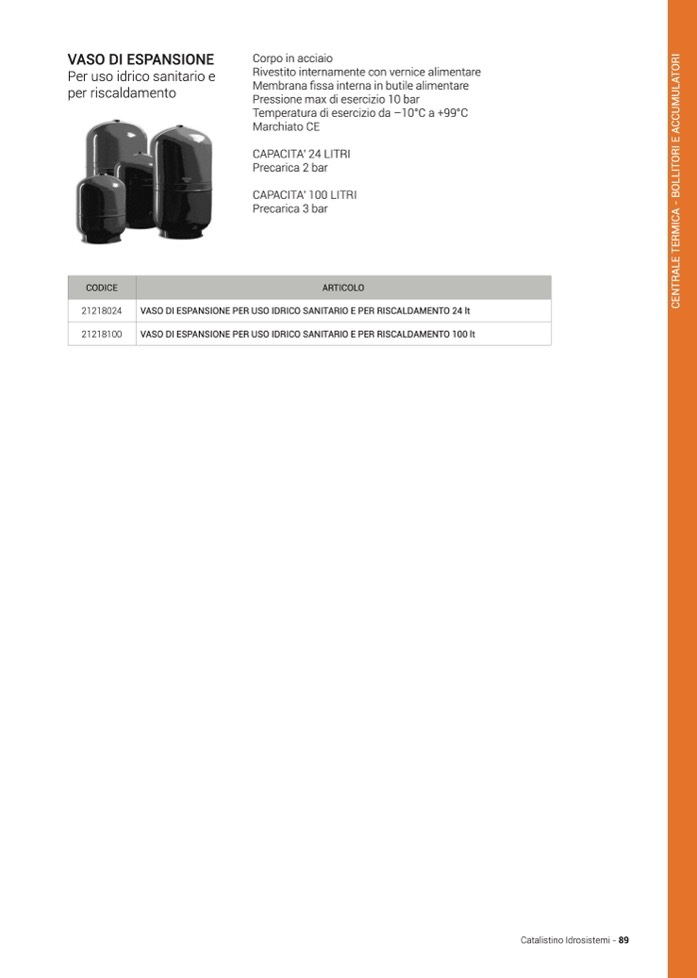 VASO DI ESPANSIONE PER USO IDRICO SANITARIO E PER RISCALDAMENTO 100 lt