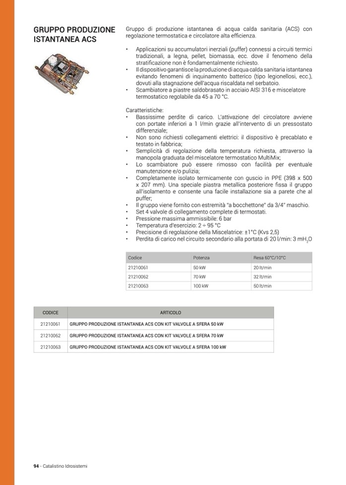Gruppo di produzione istantanea di acqua calda sanitaria (ACS) con