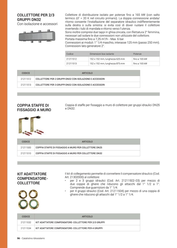 Collettore di distribuzione isolato per potenze fino a 165 kW (con salto