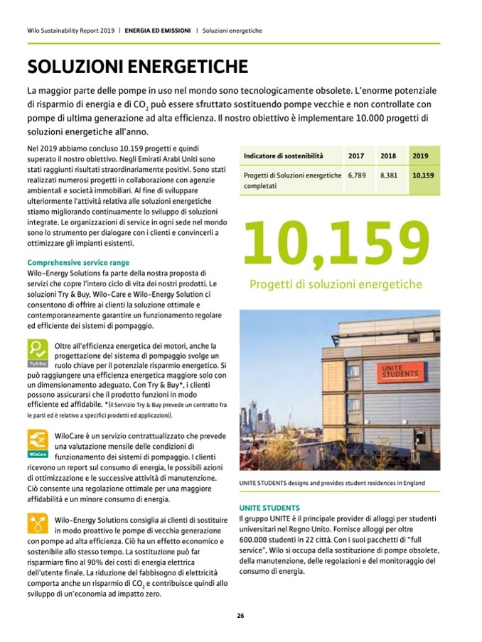Wilo Sustainability Report 2019 | ENERGIA ED EMISSIONI | Soluzioni energetiche