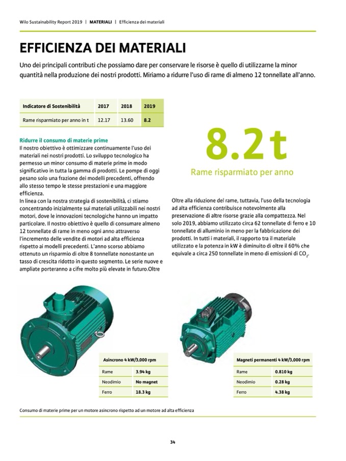 Wilo Sustainability Report 2019 | MATERIALI | Efficienza dei materiali