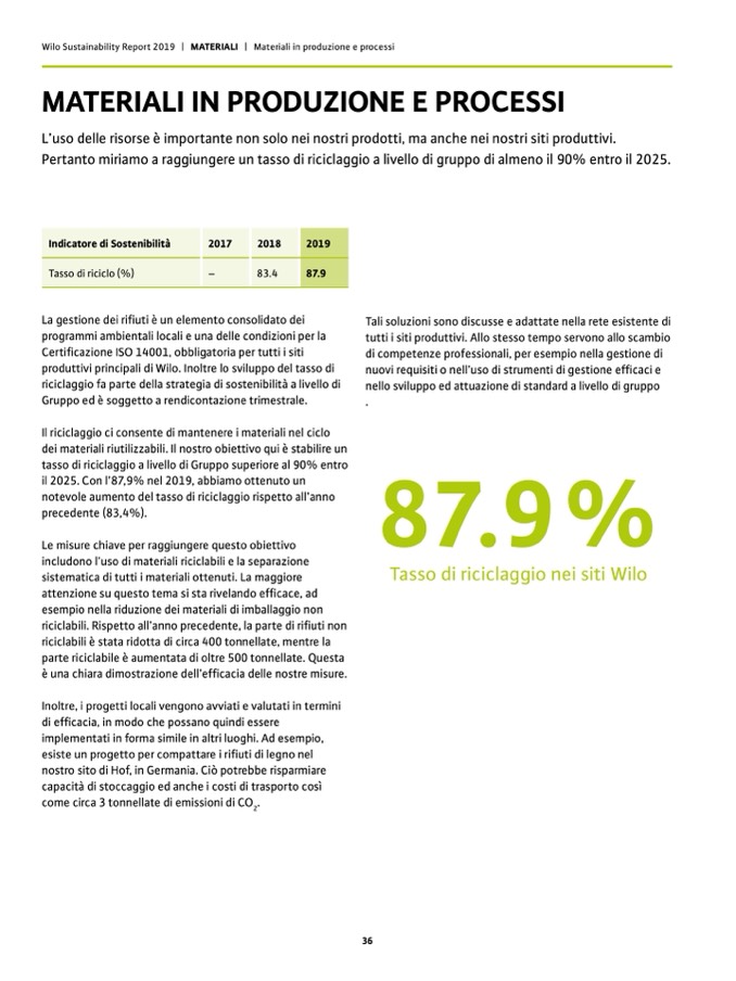Wilo Sustainability Report 2019 | MATERIALI | Materiali in produzione e processi
