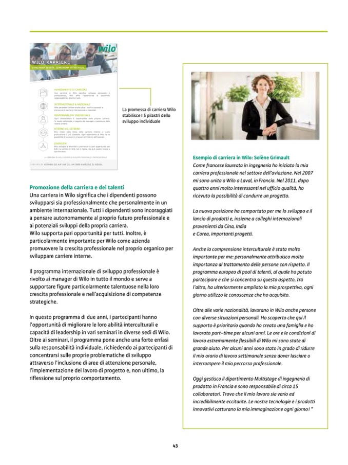 promuoverle il più possibile. Ogni dipendente di Wilo ha la