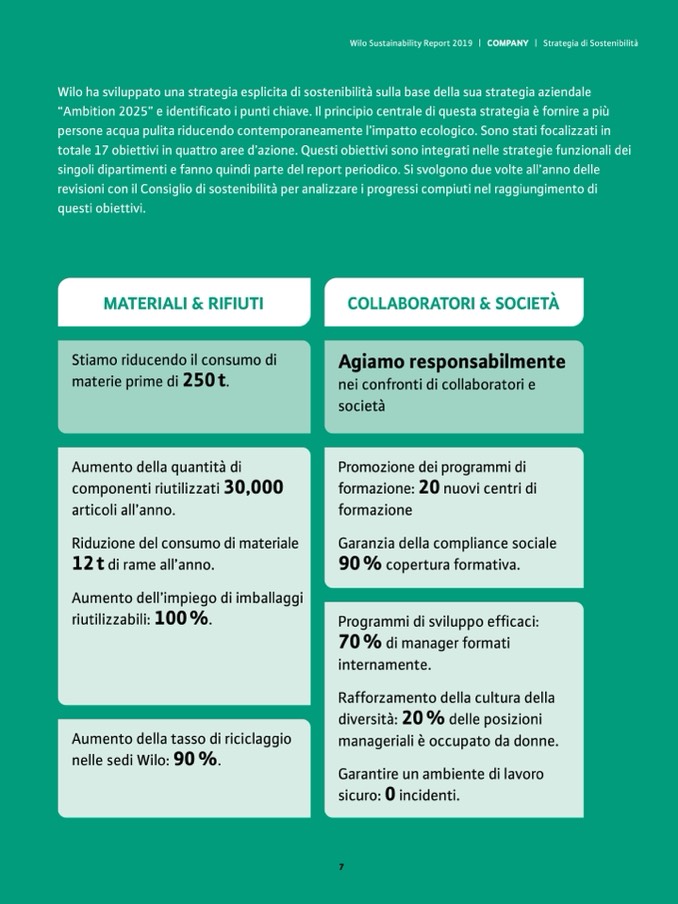 Wilo Sustainability Report 2019 | COMPANY | Strategia di Sostenibilità