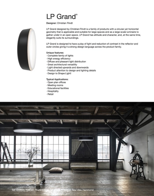 LP Grand is designed to have a play of light and reduction of contrast in the reflector and