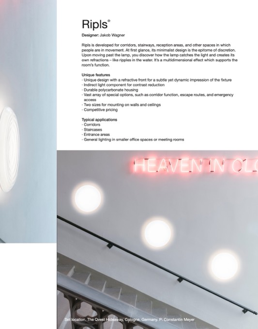 Ripls is developed for corridors, stairways, reception areas, and other spaces in which