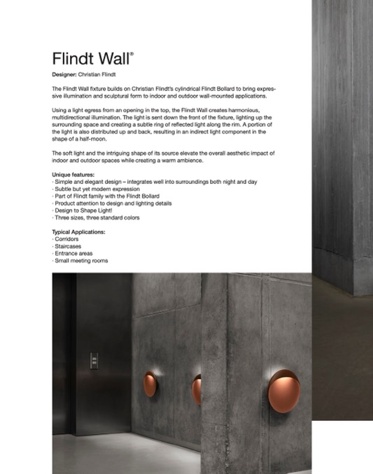 The Flindt Wall fixture builds on Christian Flindt’s cylindrical Flindt Bollard to bring expres-
