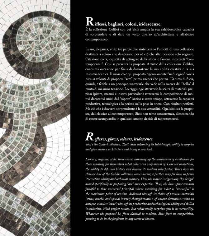 Artistic line of the Colibrì collection comes across; a further way for Sicis to prove