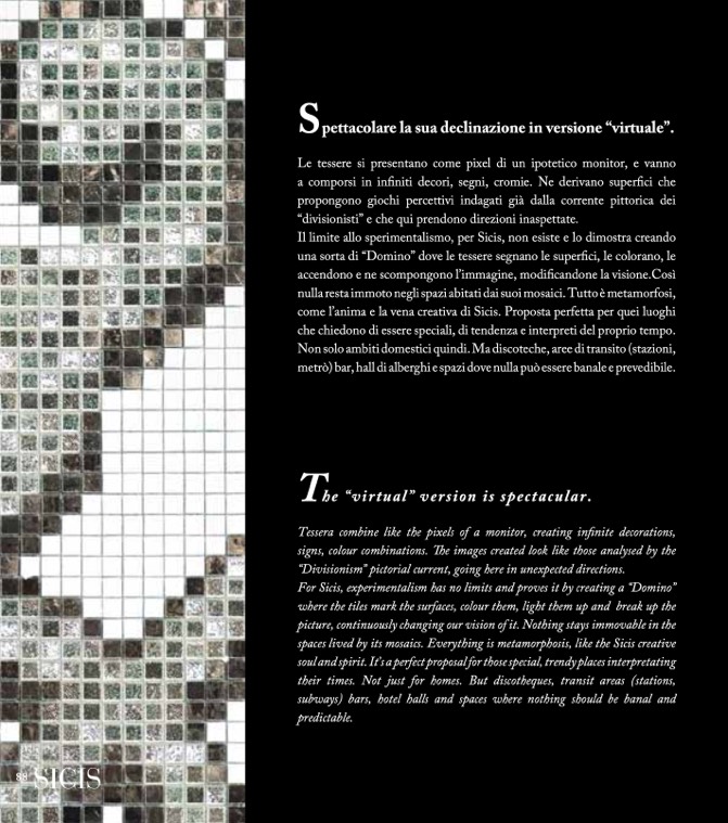 spaces lived by its mosaics. Everything is metamorphosis, like the Sicis creative