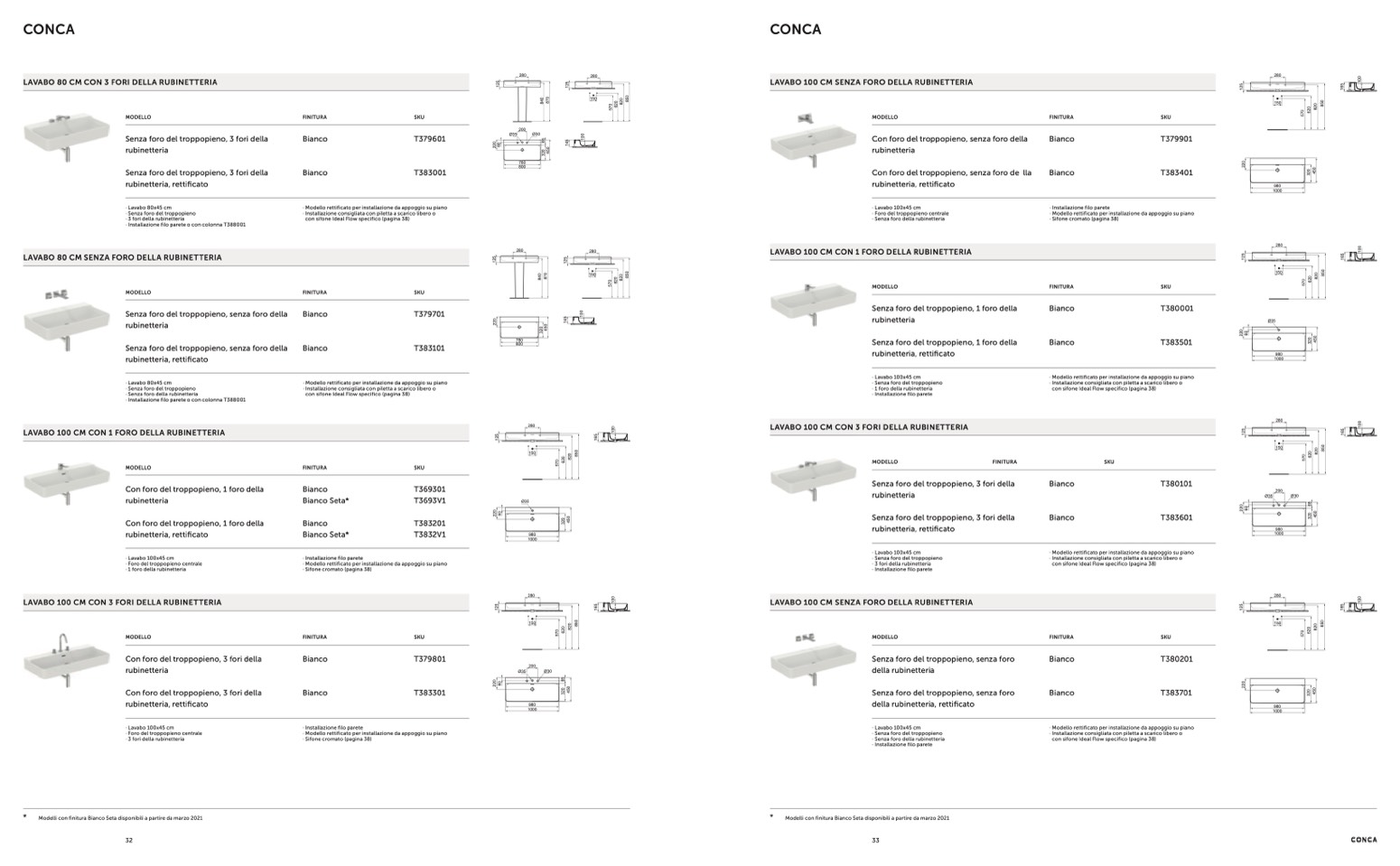 LAVABO 80 CM CON 3 FORI DELLA RUBINETTERIA