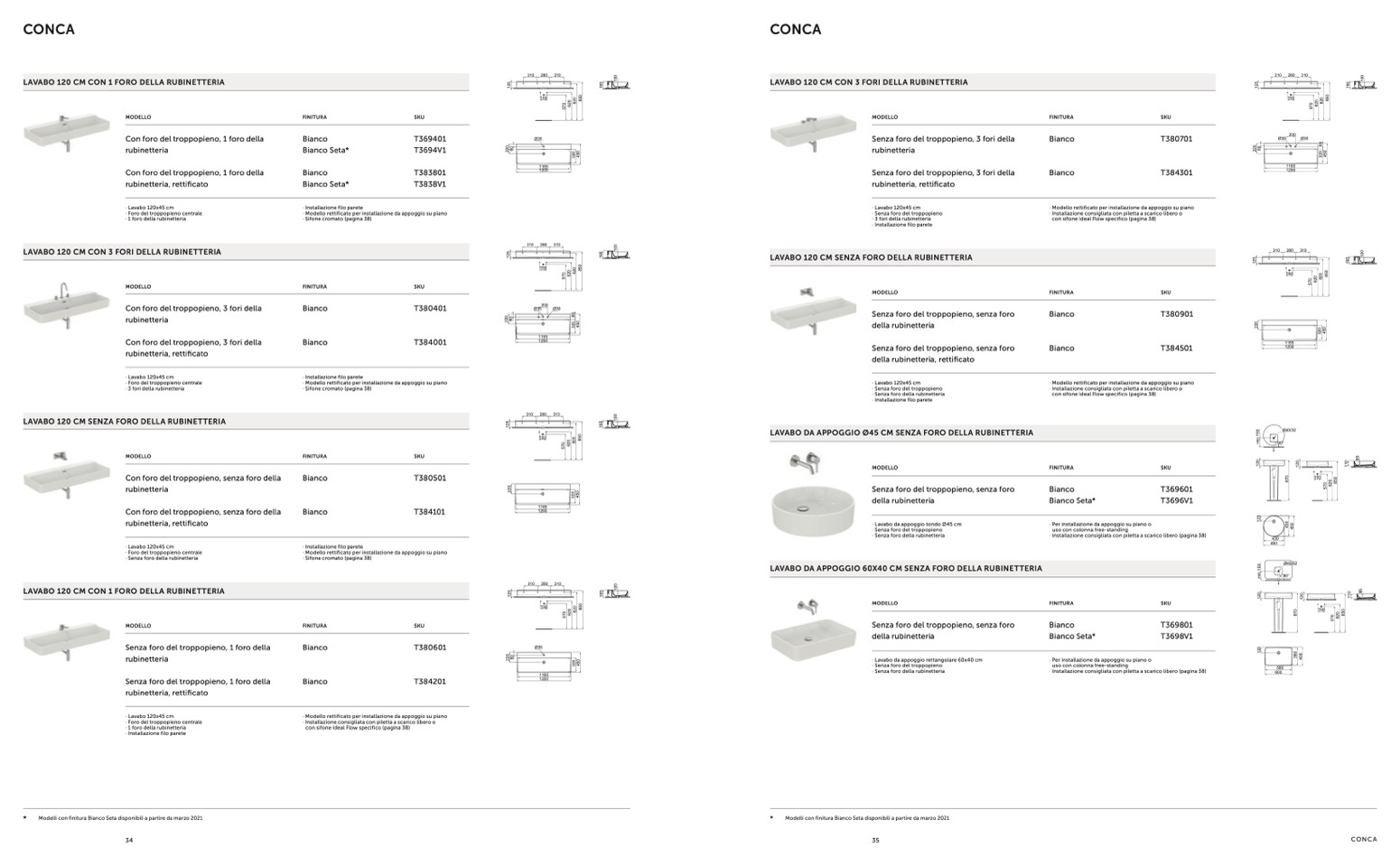 LAVABO 120 CM SENZA FORO DELLA RUBINETTERIA