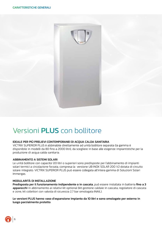 VICTRIX SUPERIOR PLUS è abbinabile direttamente ad unità bollitore separata (la gamma è