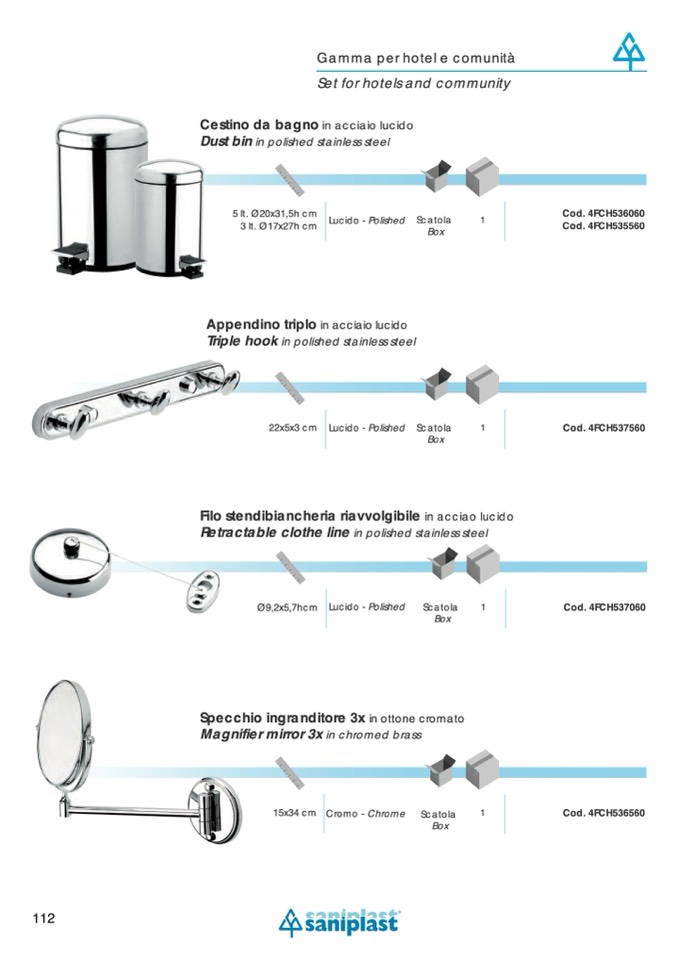 Cestino da bagno in acciaio lucido