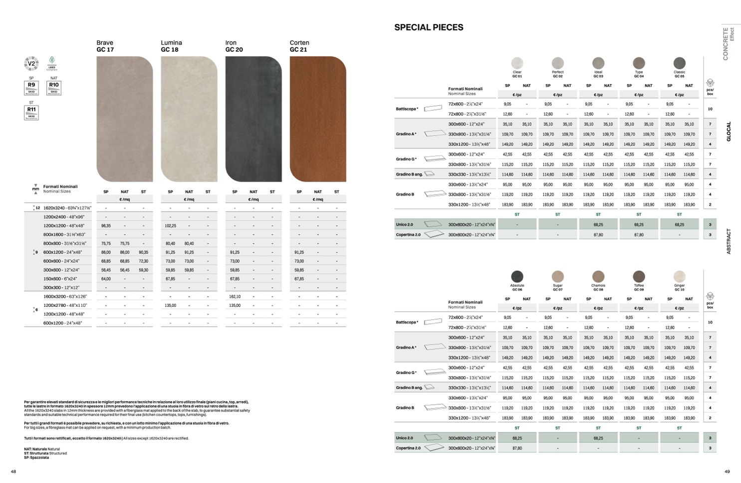 Tutti i formati sono rettificati, eccetto il formato 1620x3240 | All sizes except 1620x3240 are rectified.