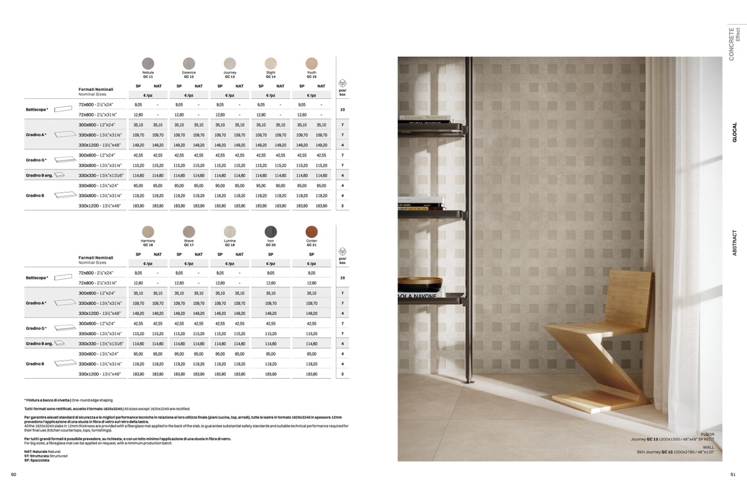 Tutti i formati sono rettificati, eccetto il formato 1620x3240 | All sizes except 1620x3240 are rectified.