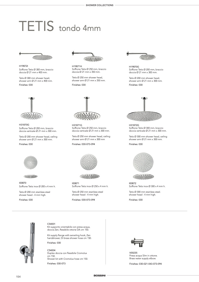 Soffione Tetis inox Ø 250 x 4 mm h.
