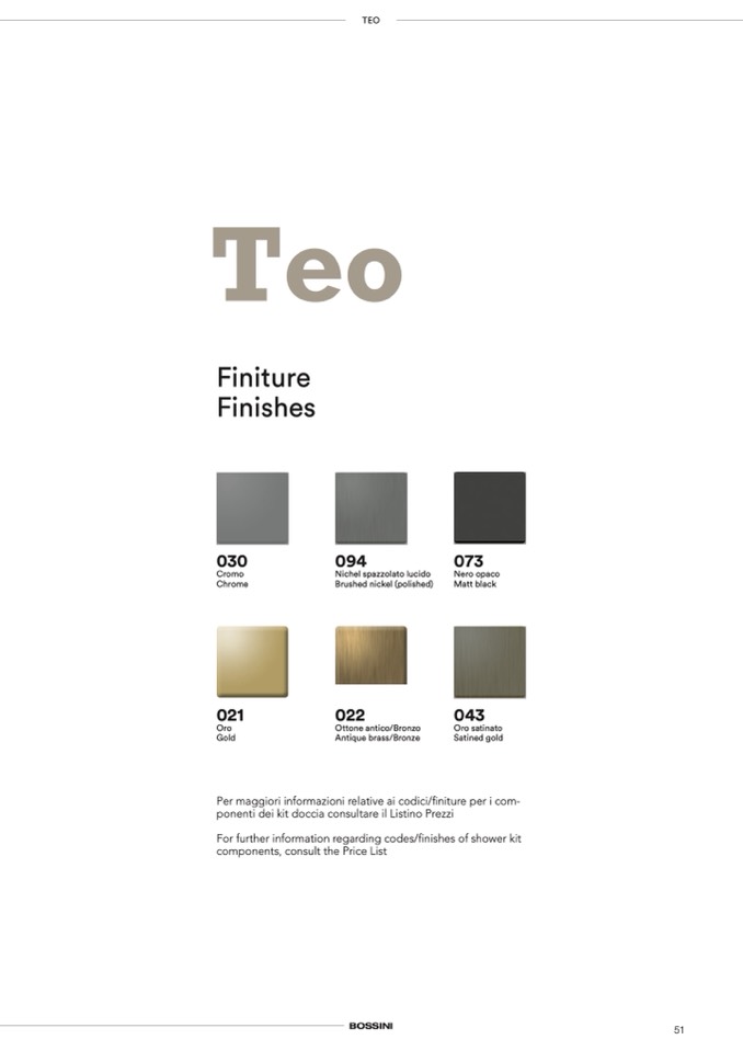 For further information regarding codes/finishes of shower kit
