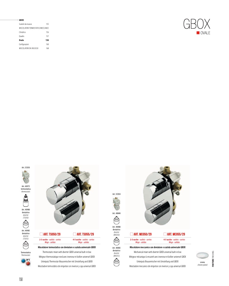 Mezcladore meccanico de empotrar con inversor y caja universal GBOX