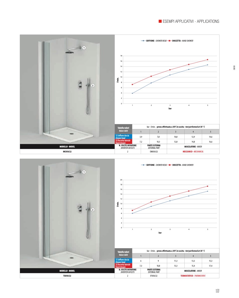 bar - l/min. - prova effettuata a 38°C in uscita - test performed at 38 ° C