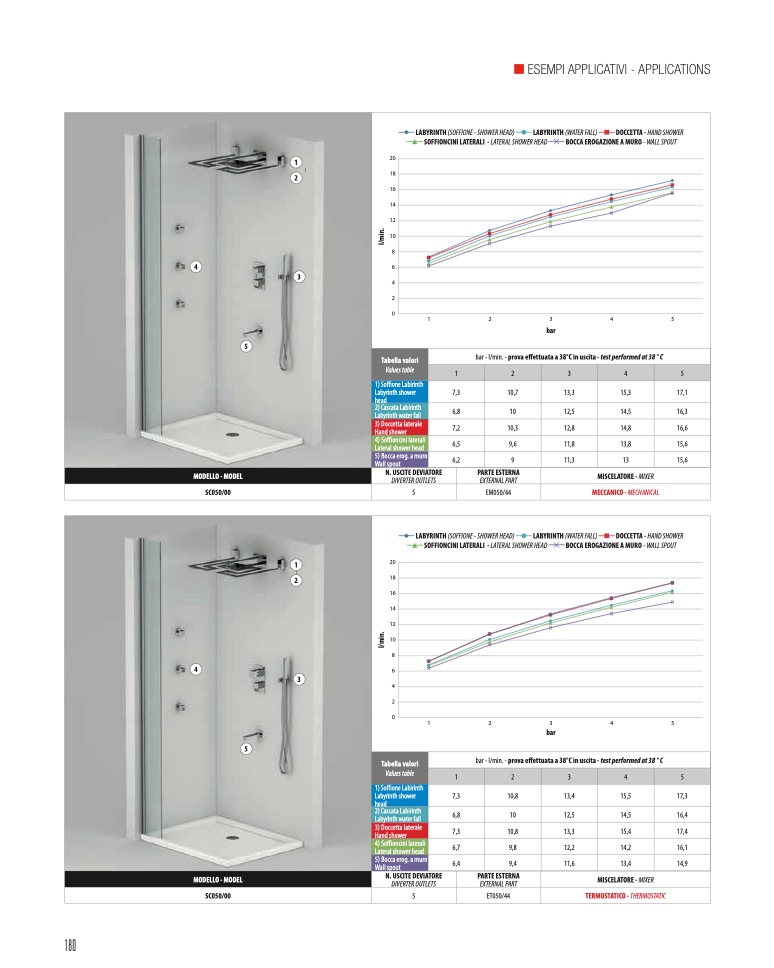 bar - l/min. - prova effettuata a 38°C in uscita - test performed at 38 ° C