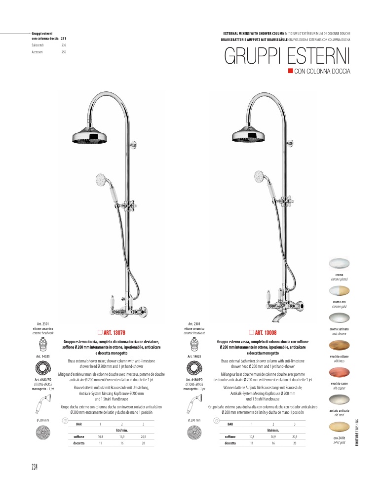EXTERNAL MIXERS WITH SHOWER COLUMN MITIGEURS D’EXTÉRIEUR MUNI DE COLONNE DOUCHE