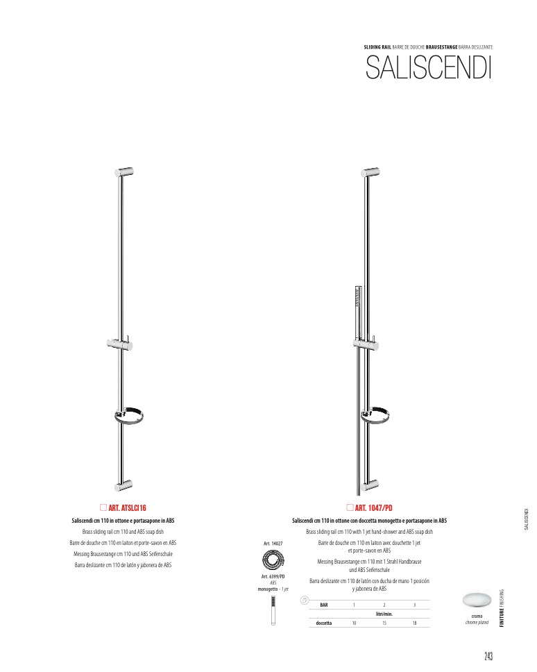Saliscendi cm 110 in ottone con doccetta monogetto e portasapone in ABS