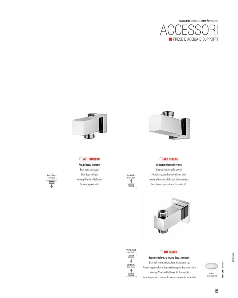 Supporto colonna e attacco doccia in ottone