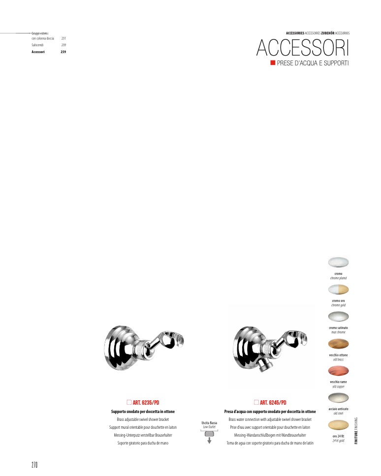 Presa d’acqua con supporto snodato per doccetta in ottone