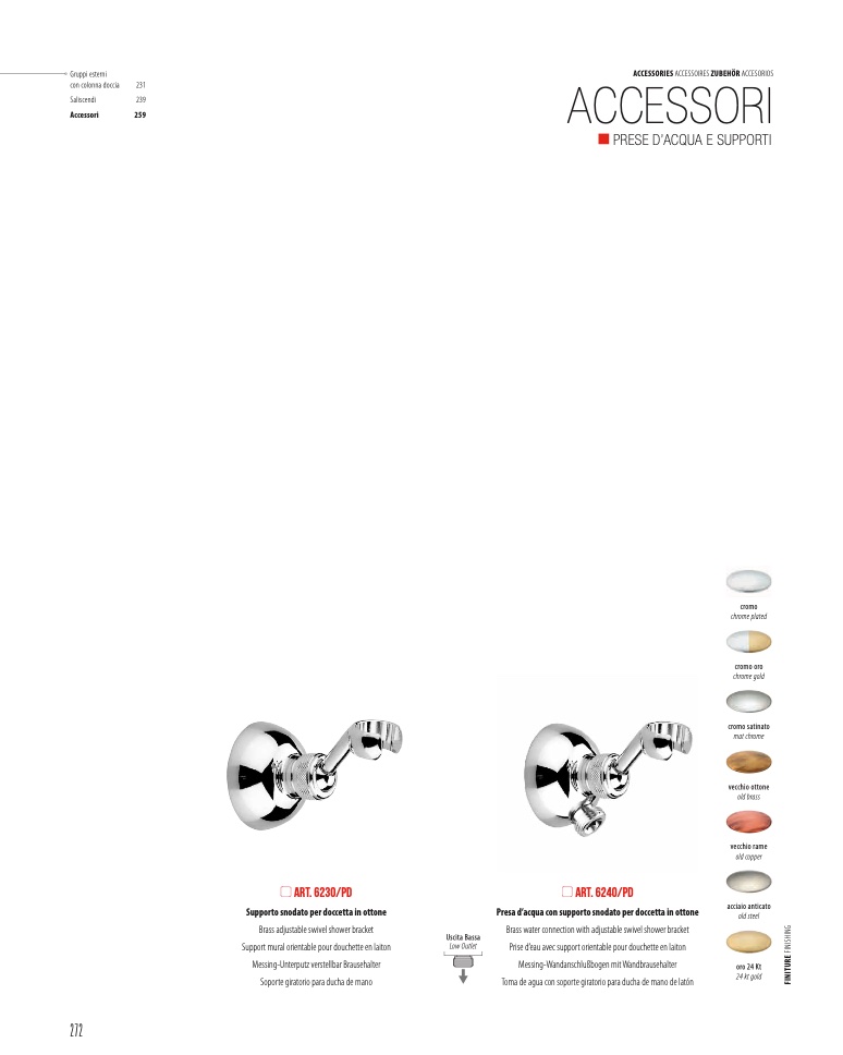 Presa d’acqua con supporto snodato per doccetta in ottone