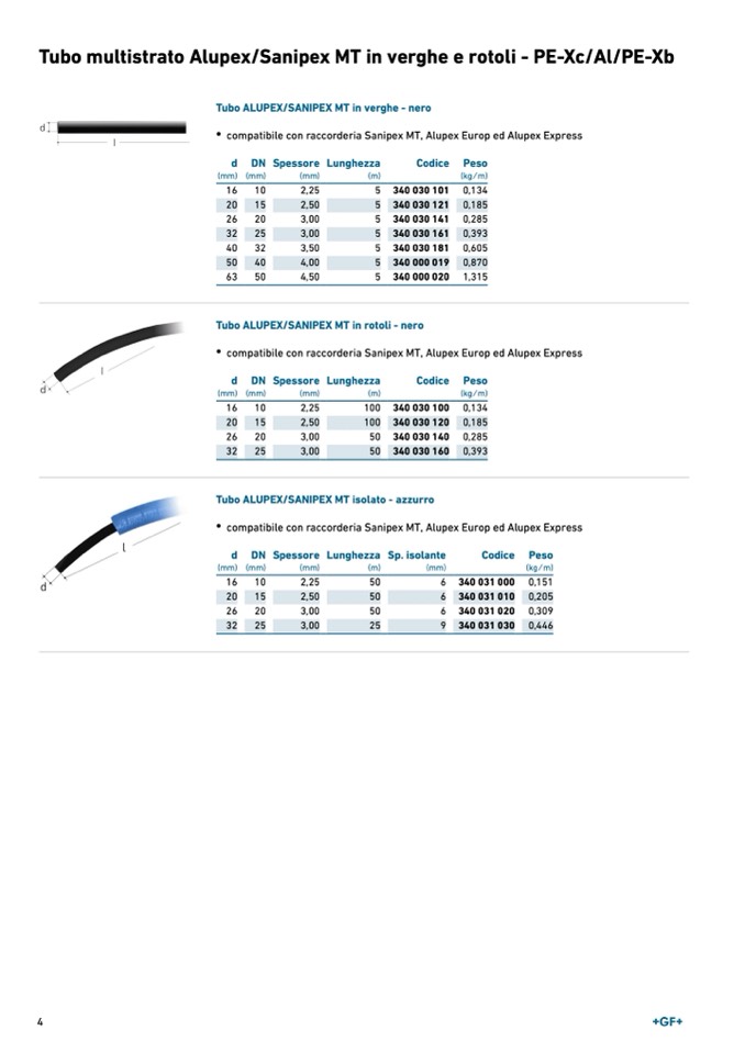 Tubo multistrato Alupex/Sanipex MT in verghe e rotoli - PE-Xc/Al/PE-Xb