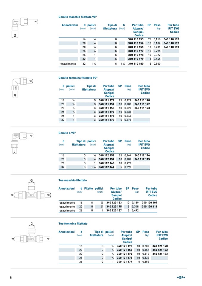 Gomito femmina filettato 90°