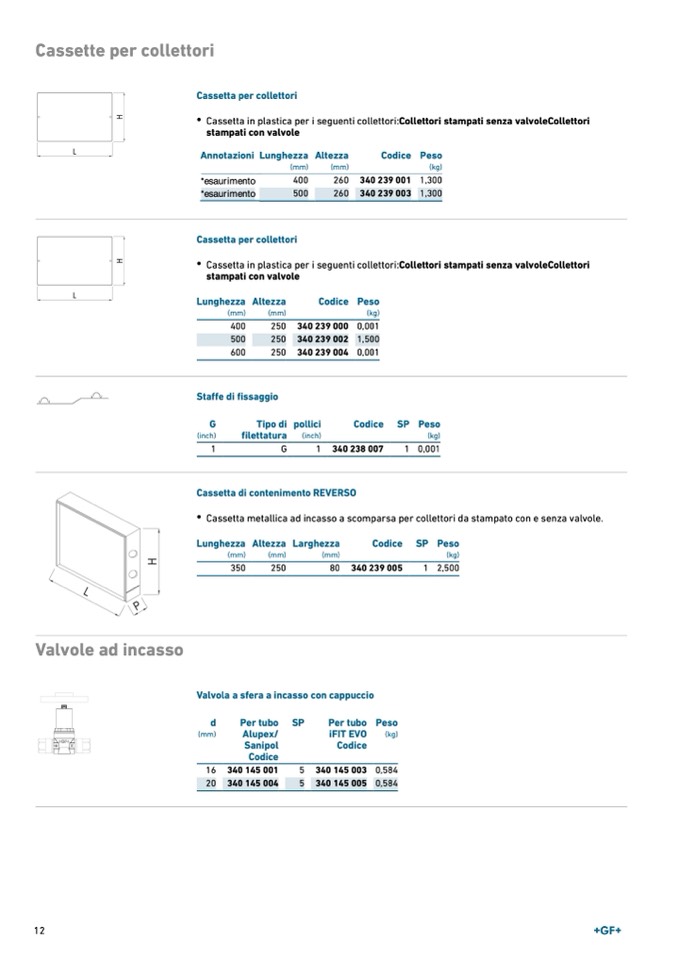 Cassetta in plastica per i seguenti collettori:Collettori stampati senza valvoleCollettori