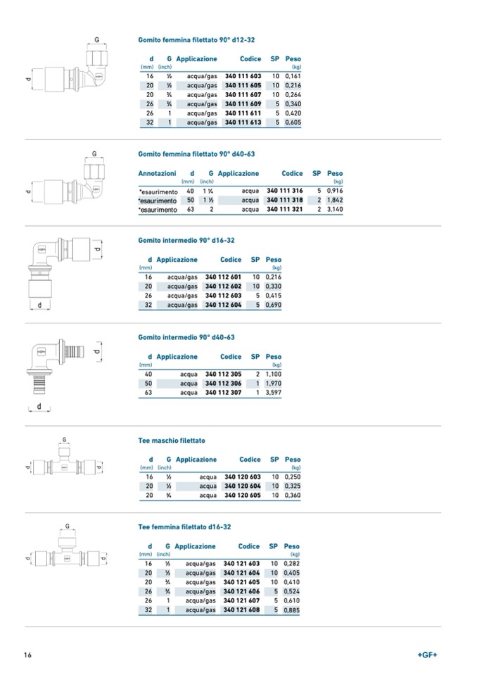 Tee femmina filettato d16-32