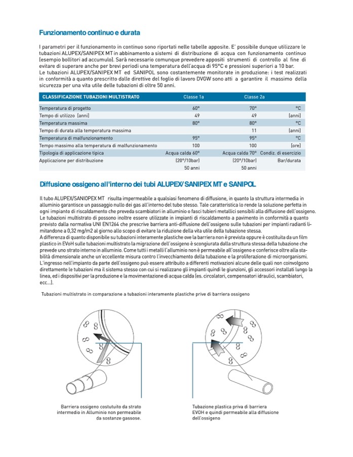A differenza di quanto disponibile su tubazioni interamente plastiche ove la barriera non è prevista oppure è costituita da un film