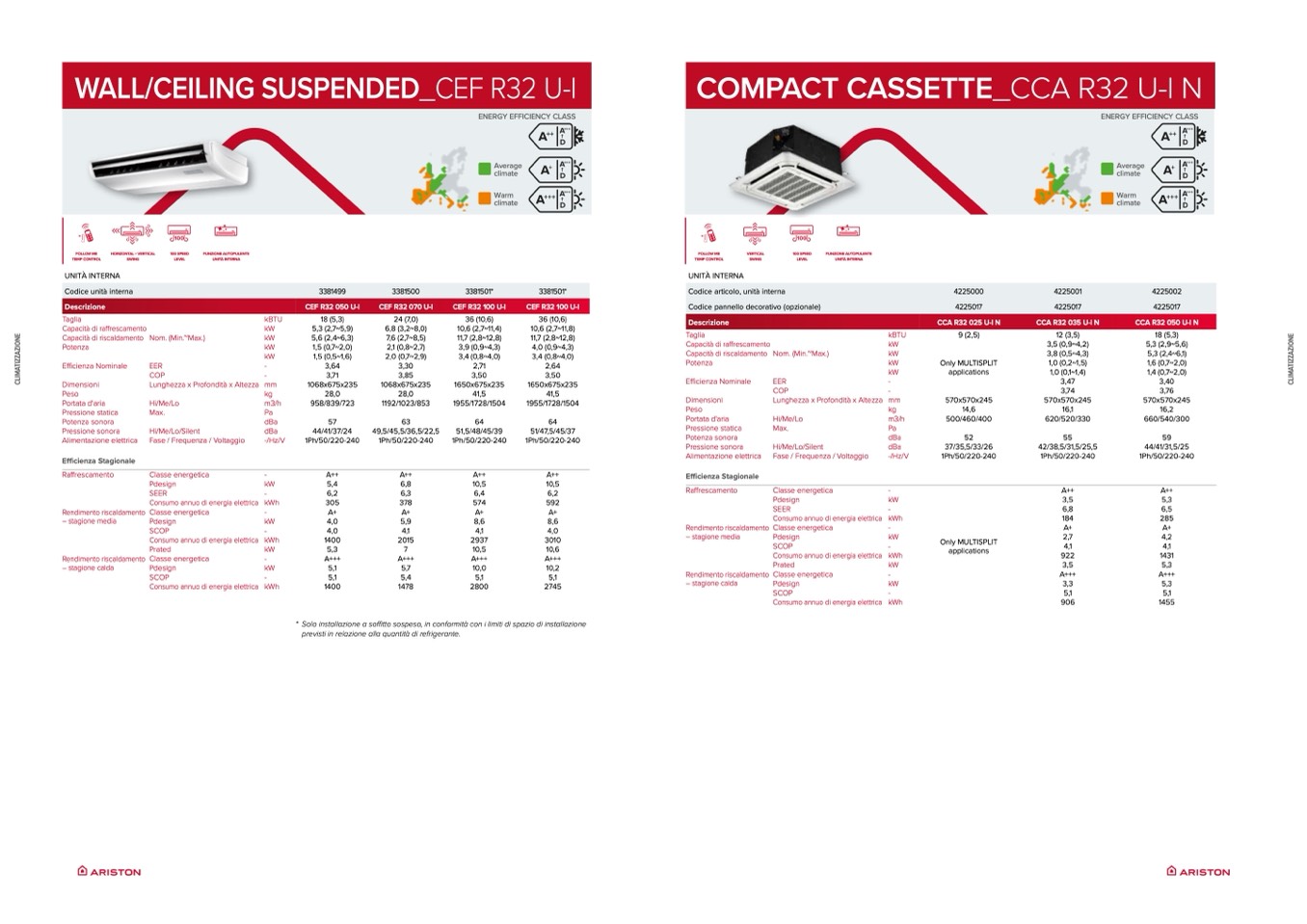 Solo installazione a soffitto sospeso, in conformità con i limiti di spazio di installazione