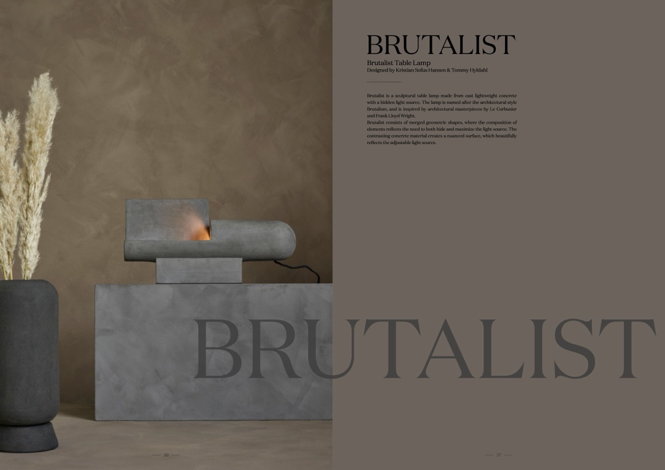 Brutalist is a sculptural table lamp made from cast lightweight concrete