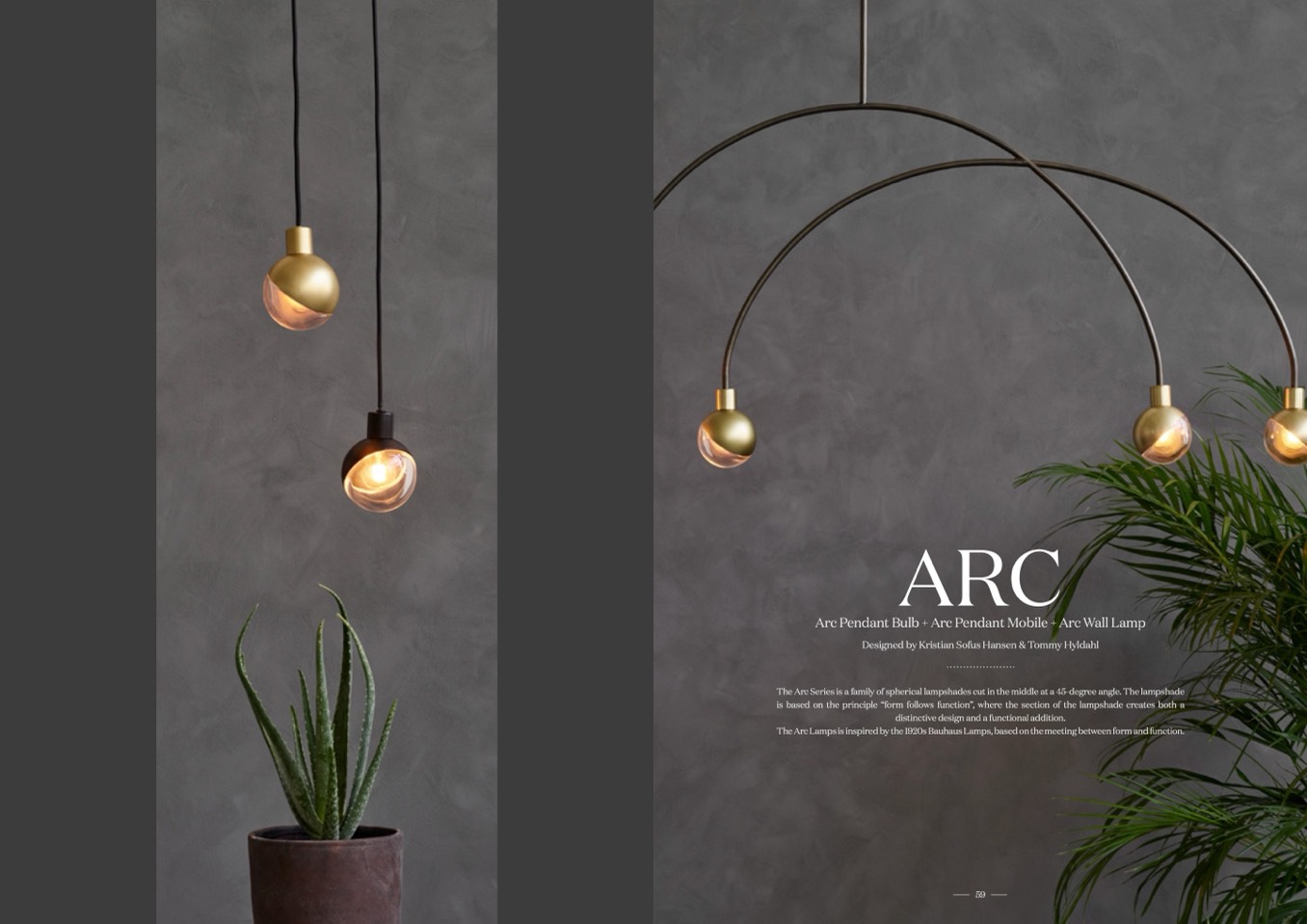 The Arc Series is a family of spherical lampshades cut in the middle at a 45-degree angle. The lampshade