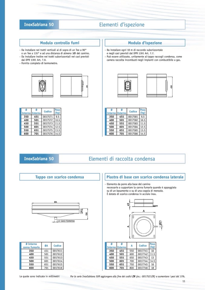Per la serie InoxSabiana 50R aggiungere alla fine dei codici ZR (es.: 0017521ZR) e aumentare i pesi del 15%.