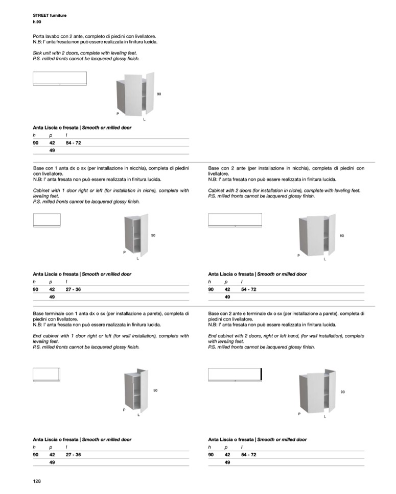 Porta lavabo con 2 ante, completo di piedini con livellatore.
