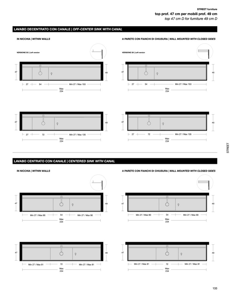 LAVABO CENTRATO CON CANALE | CENTERED SINK WITH CANAL